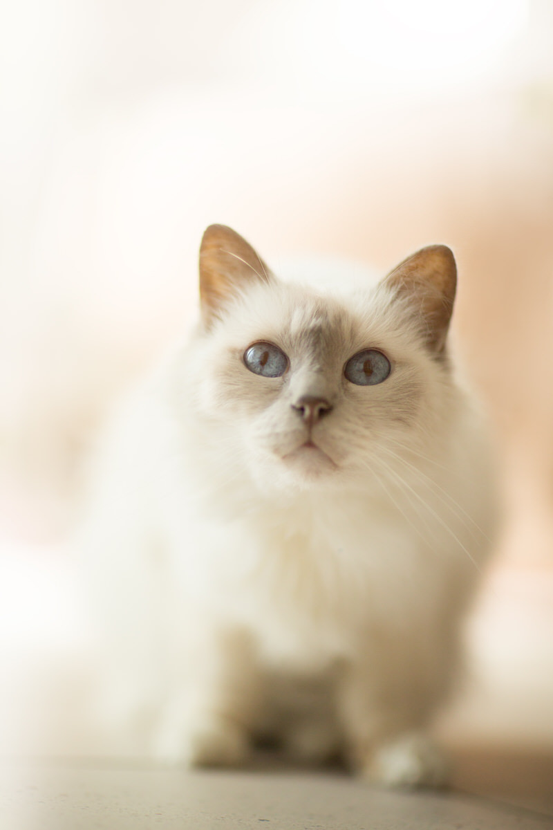 Aujourd’hui je vous présente le shooting de deux chats Sacré de Birmanie. Ils vivent à Lausanne dans un appartement sous les toits avec leur propriétaire. Cette séance photo m’a touchée pour plusieurs raisons. Le mâle, âgé de 13 ans, est arrivé en premier. C’est un chat qui aime particulièrement la compagnie, il est touchant ! Il passait beaucoup de temps sur la terrasse à observer ses voisins sur le balcon d’à côté. Lorsque ceux-ci sont partis, il a commencé à s’ennuyer… Très vite, sa propriétaire a été chercher une magnifique femelle, il avait alors 1,5 an. Il l’a tout de suite pris son « aile » et lui a tout appris, prenant son rôle de « papa » très au sérieux ;). Aujourd’hui les deux s’adorent, ils ont chacun leurs habitudes mais aiment la présence de l’un et l’autre…
